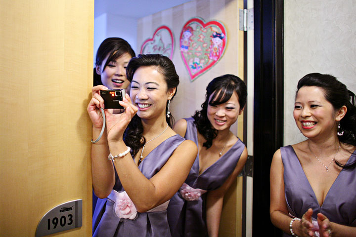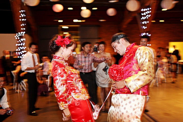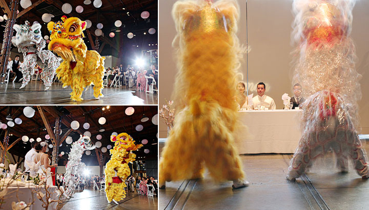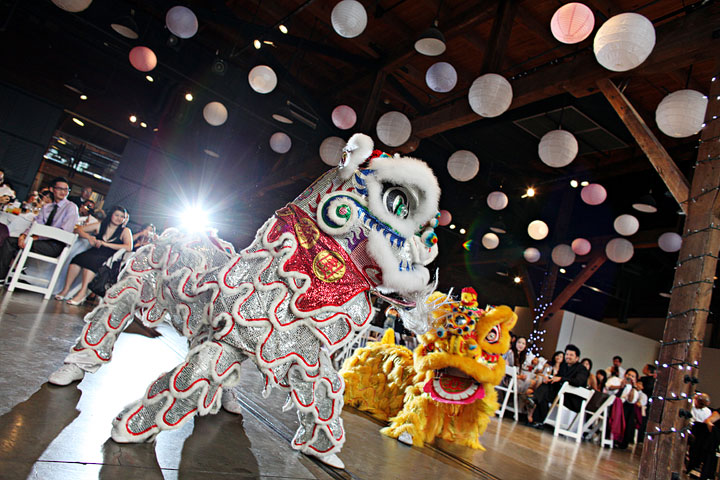 When I look at the photos I am reminded of what a range of activity there was at this wedding—yet somehow it all ran smoothly. Five outfit changes, door games with barefoot scrabble, a tea ceremony, a lovely wedding ceremony on the walkway of VanDusen Gardens, drawing of a mural (in, as luck would have it, colour-appropriate chalk), a lion dance performed in part by Theressa’s brother, and a round or two of a very odd game which involved breaking one another’s ‘eggs.’ All good fun! Please see the bottom of the post for more details.